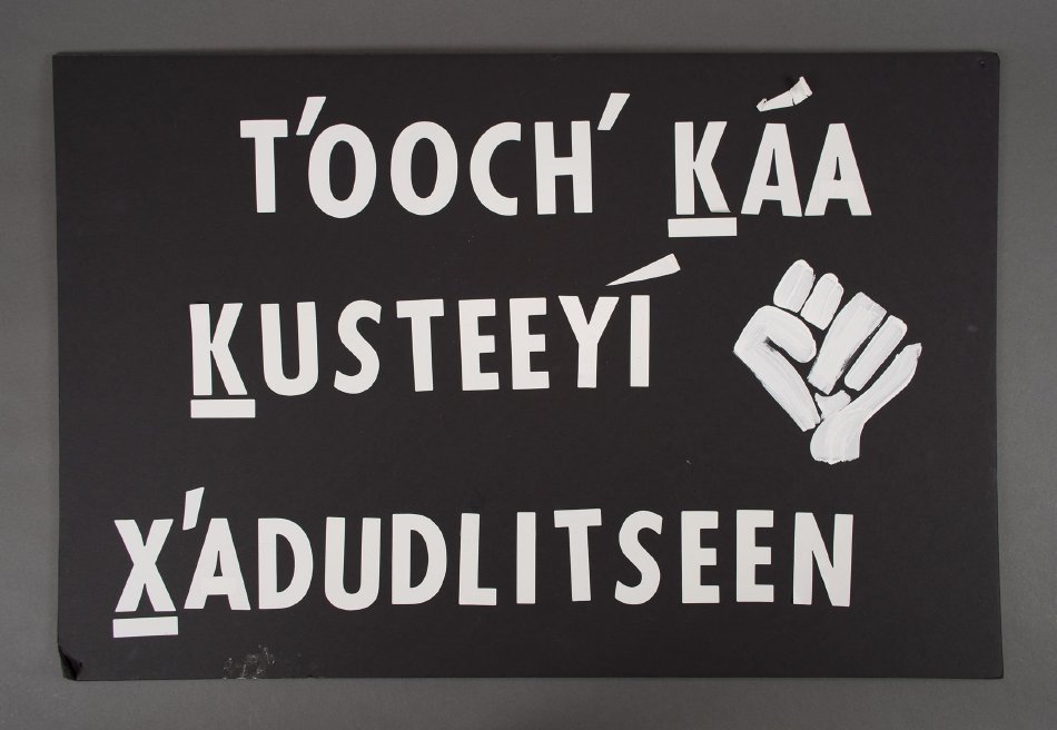 Despite our isolation, Ketchikan remains intimately connected to the events of the world. George Floyd's murder at the hands of a police officer in Minneapolis in May of 2020 sparked protests and rioting across the country. In solidarity, around 400 people showed up at the corner of Tongass Avenue and Jefferson Street on June 6, 2020 to support demands for racial equality. This sign was made for that protest and translates to "Black Life is Cherished" in Lingit, the Tlingit language.
