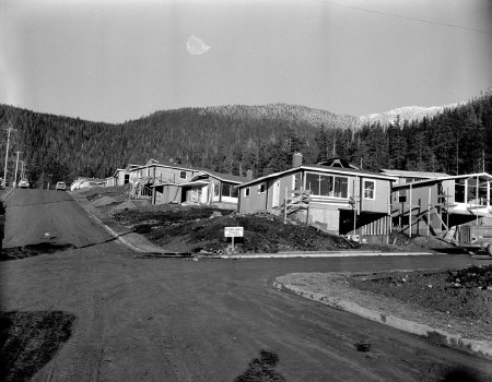 White Cliff School is at upper left. McKay's Marine Ways is at top center. The newly-completed Austin Tower Apartment building (now Tongass Tower) is at left center, and the Wingren Court Apartments (now... View Full Record
