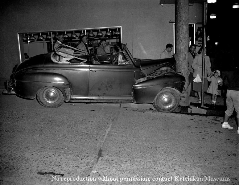 '41 Mercury Meets Utility Pole Grant and Front Streets, June 24, 1954