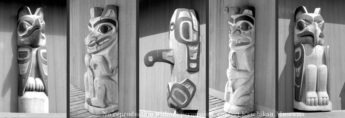 With grant funding from the Alaska State Council on the Arts, a "Extended Learning Project" in 1987 gave highly skilled and driven Totem Heritage Center students the chance to work full-time under the direction of master carvers. Over the course of six months, students worked with Haida artist Freda Diesing and Tlingit artist Dempsey Bob in all aspects of carving. Students completed two-dimensional designs and relief carvings, masks, frog bowls, and, finally, the house posts made of red cedar donated by the Cape Fox Corporation.
