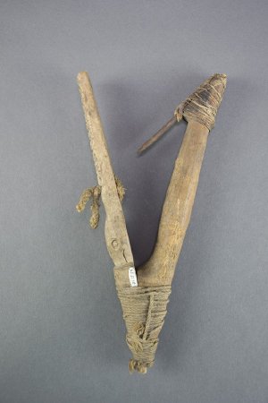 Long before modern fishing gear, local Native clans created ingenious tools to catch the fish they needed to sustain them throughout the year. While salmon, herring, and eulachon were important staples for the local diet, fresh and dried halibut provided good reserves for winter. In local waters, halibut can reach gigantic proportions and halibut hooks were used to catch more desirable and manageable 30-50 pound fish. Halibut hooks are made from two sections of wood, usually yew or yellow cedar, lashed together forming a distinctive V-shape. One arm is usually carved with a symbolic design representing a clan or aquatic creature while the other has a sharp barb, traditionally made of bone and later, metal. A baited hook is lowered to the sea floor with cedar bark or sinew line and stone sinkers. The biting halibut's cheek catches on the barb and by design the more the fish struggles, the further entangled it will become.