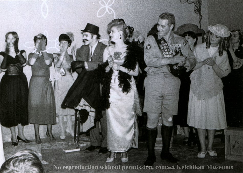 "The Fish Pirate's Daughter" is Ketchikan's original and iconic melodrama. The play hilariously spoofs Ketchikan's colorful past, touching on themes of prohibition, the Creek Street red-light district, and good old-fashioned thievery. As the legend of its inception goes, June Allen proposed the basic idea for the play during a Chamber of Commerce meeting as a way to attract tourism to the community. She volunteered newspaper reporter, Bob Kinerk, to write the script, and within a week he had created a rough draft. Shortly after Jim Alguire was recruited to write the score. After rounding up a cast from First City Players, a newly formed theatre group, the play debuted in March of 1966 in the Totem Room at the Stedman Hotel.